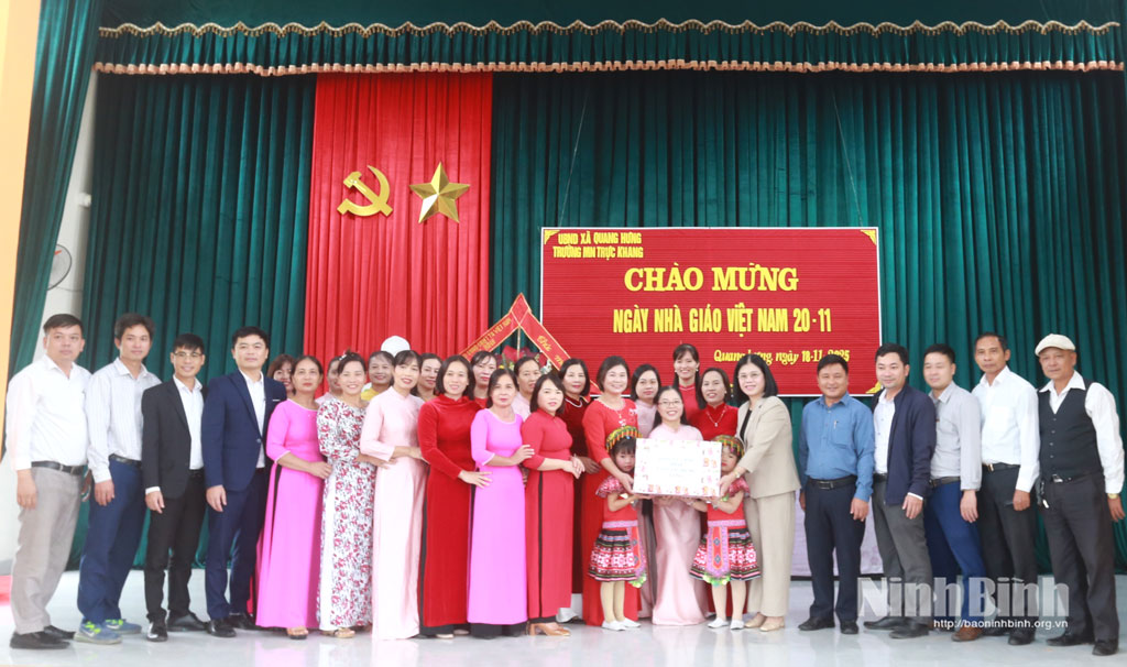 * Đồng chí Trần Thị Định, Tỉnh ủy viên, Bí thư Đảng ủy, Chủ tịch HĐND xã Quang Hưng thăm, chúc mừng các thầy, cô giáo Trường Mầm non Trực Khang, xã Quang Hưng nhân kỷ niệm 43 năm Ngày Nhà giáo Việt Nam.