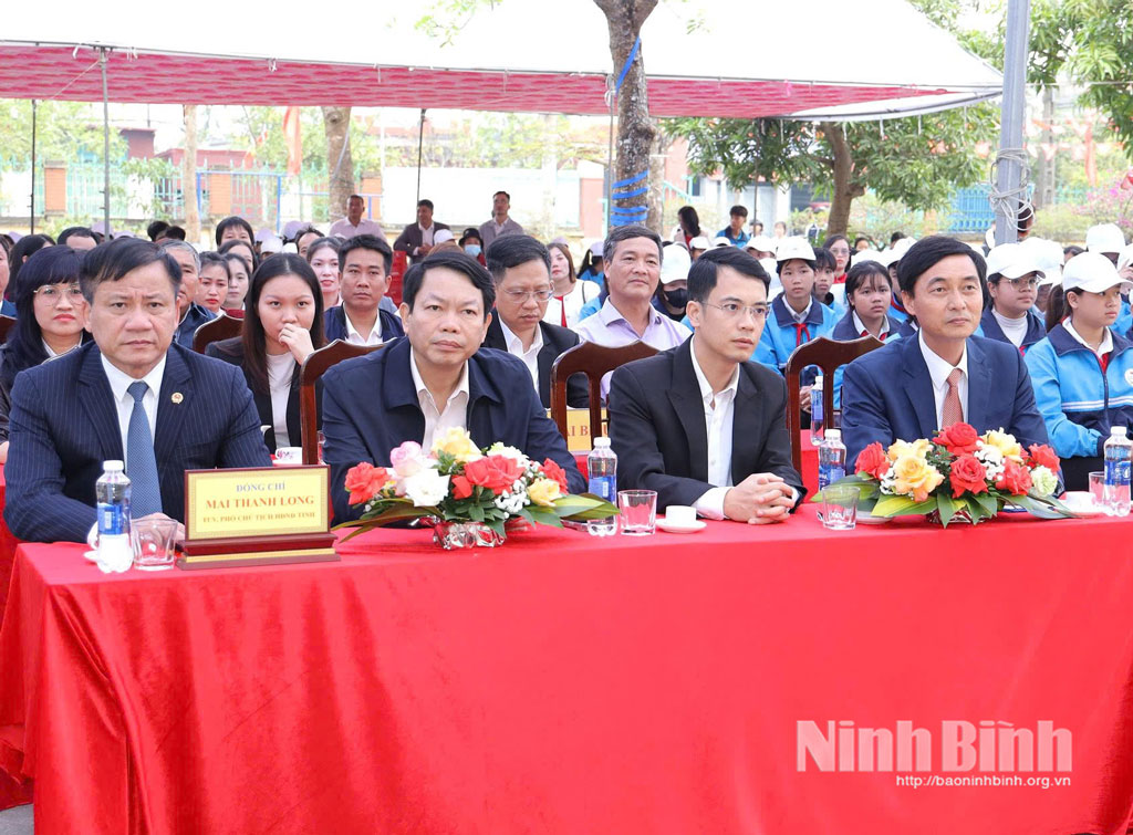 Tặng hoa, chúc mừng nhà trường, thay mặt Tỉnh ủy, HĐND, UBND, Ủy ban MTTQ Việt Nam tỉnh, đồng chí Nguyễn Anh Chức, Ủy viên BTV Tỉnh ủy, Phó Chủ tịch UBND tỉnh biểu dương, ghi nhận những thành tích mà các thế hệ thầy và trò nhà trường đạt được trong thời gian qua.