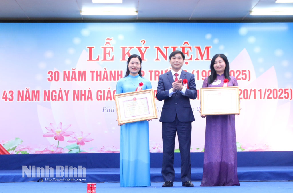 Nhân dịp này, đồng chí Nguyễn Thị Minh Nguyệt, Phó Giám đốc Sở Giáo dục và Đào tạo đã tặng hoa chúc mừng và bày tỏ sự ghi nhận đối với những nỗ lực bền bỉ của tập thể nhà trường trong mọi điều kiện, luôn giữ vững tinh thần đổi mới, sáng tạo, đạt nhiều kết quả nổi bật, khẳng định vị thế là một trong những cơ sở giáo dục chất lượng cao của tỉnh. Đồng chí gửi lời tri ân và chúc mừng các thầy giáo, cô giáo nhân Ngày Nhà giáo Việt Nam 20/11; đồng thời bày tỏ mong muốn đội ngũ nhà giáo tiếp tục phát huy truyền thống tốt đẹp, nêu cao tinh thần trách nhiệm, đoàn kết, nỗ lực vượt khó, không ngừng trau dồi kiến thức, chuyên môn, nghiệp vụ, phấn đấu hoàn thành xuất sắc nhiệm vụ, góp phần đưa sự nghiệp giáo dục của địa phương ngày càng phát triển toàn diện.