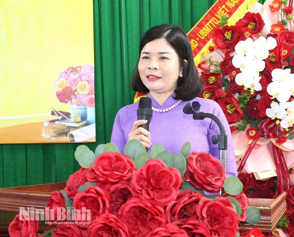 Phát biểu tại lễ kỷ niệm, đồng chí Phạm Thị Thu Hằng, Ủy viên BTV Tỉnh ủy, Tổng Biên tập Báo và phát thanh, truyền hình Ninh Bình ghi nhận những nỗ lực của thầy và trò Trung tâm. Đồng chí đánh giá cao những kết quả Trung tâm đạt được kể từ khi sáp nhập năm 2018, đặc biệt là việc duy trì chất lượng giáo dục văn hóa, mở rộng quy mô đào tạo và tạo điều kiện học tập cho nhiều thế hệ học viên trưởng thành, có khả năng lập nghiệp và đóng góp cho cộng đồng. Đây là thành quả của sự đoàn kết, sự bền bỉ trong lao động nghề nghiệp và tinh thần đổi mới của đội ngũ cán bộ, giáo viên của Trung tâm.