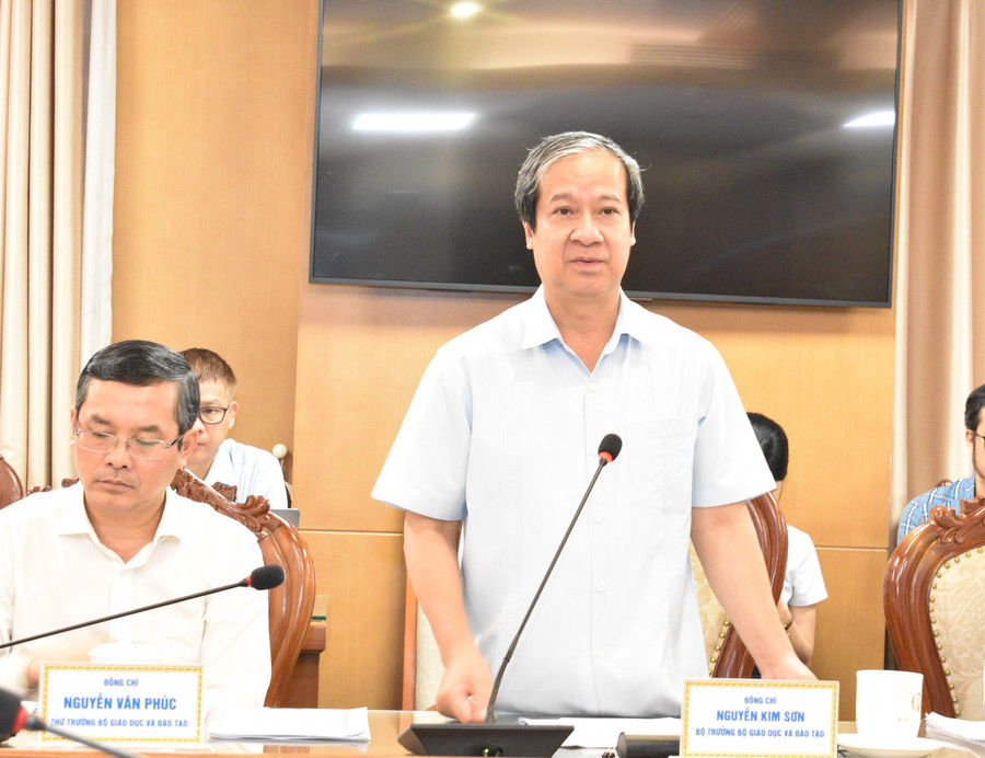 Bộ trưởng Bộ GD&ĐT Nguyễn Kim Sơn phát biểu tại buổi làm việc.
