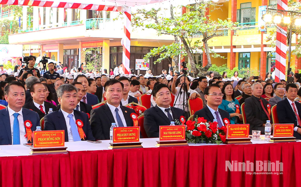 Đồng chí Bí thư Tỉnh ủy Đặng Xuân Phong và các đại biểu dự Lễ kỷ niệm tại Trường THPT Giao Thủy.