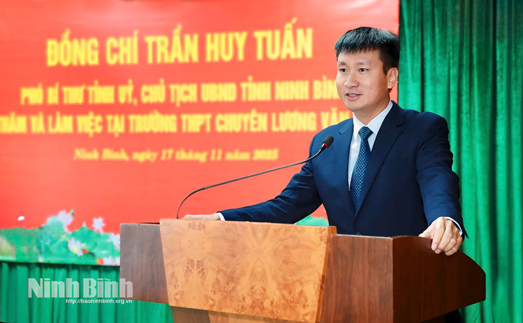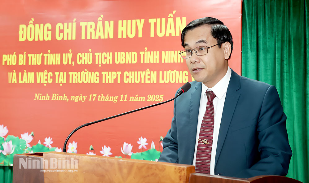 Thay mặt Tỉnh ủy, HĐND, UBND, Ủy ban MTTQ Việt Nam tỉnh, đồng chí Chủ tịch UBND tỉnh Trần Huy Tuấn gửi tới các thế hệ nhà giáo, cán bộ quản lý, nhân viên của nhà trường lời thăm hỏi ân cần, lời chúc mừng tốt đẹp nhất. Đồng chí cũng bày tỏ niềm vui mừng được đến thăm Trường THPT chuyên Lương Văn Tụy – ngôi trường trong suốt 66 năm xây dựng và phát triển đã khẳng định vị thế là “ cái nôi” đào tạo nhân tài của tỉnh, là đơn vị tiêu biểu của giáo dục vùng đồng bằng sông Hồng.