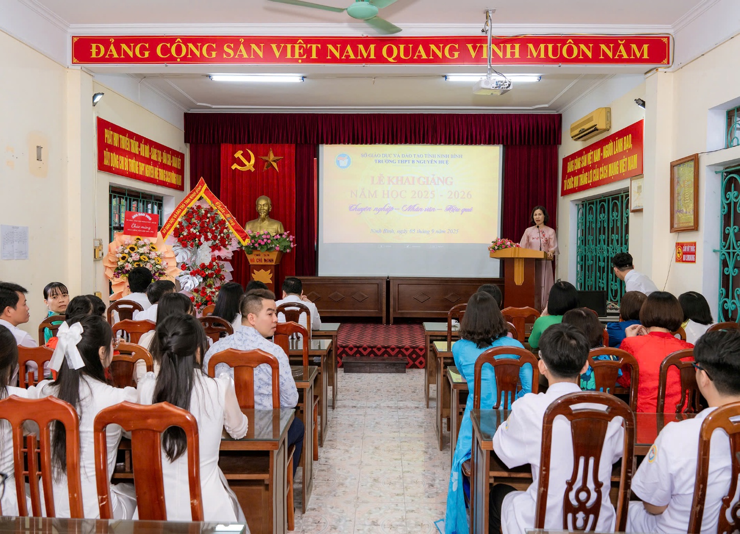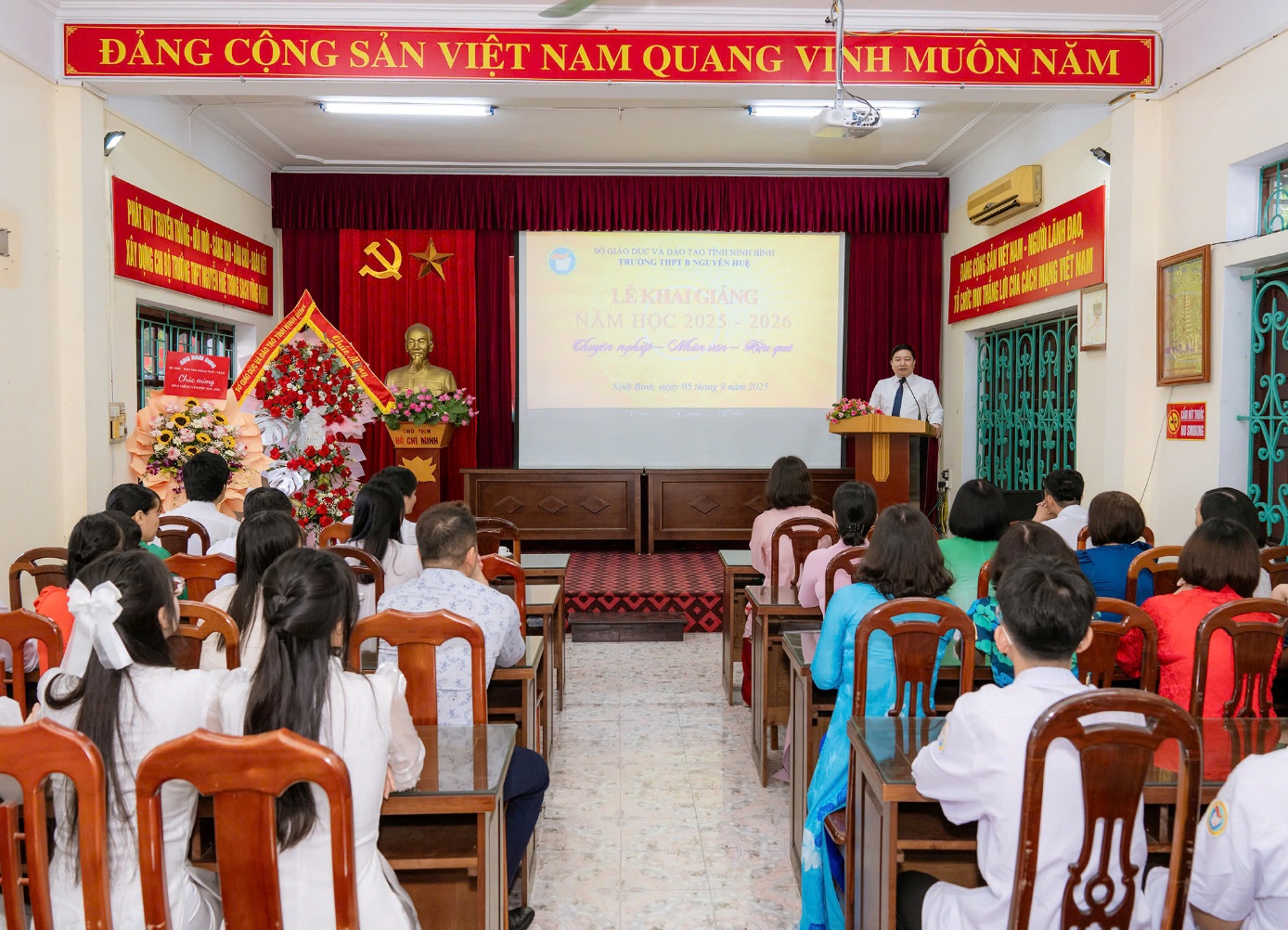 Đồng chí Giám đốc mong muốn tập thể cán bộ, giáo viên, học sinh nhà trường tiếp tục phát huy truyền thống, giữ vững kỷ cương, không ngừng đổi mới phương pháp dạy học, xây dựng môi trường giáo dục thân thiện, an toàn, từng bước khắc phục khó khăn, phấn đấu hoàn thành tốt nhiệm vụ năm học 2025-2026.