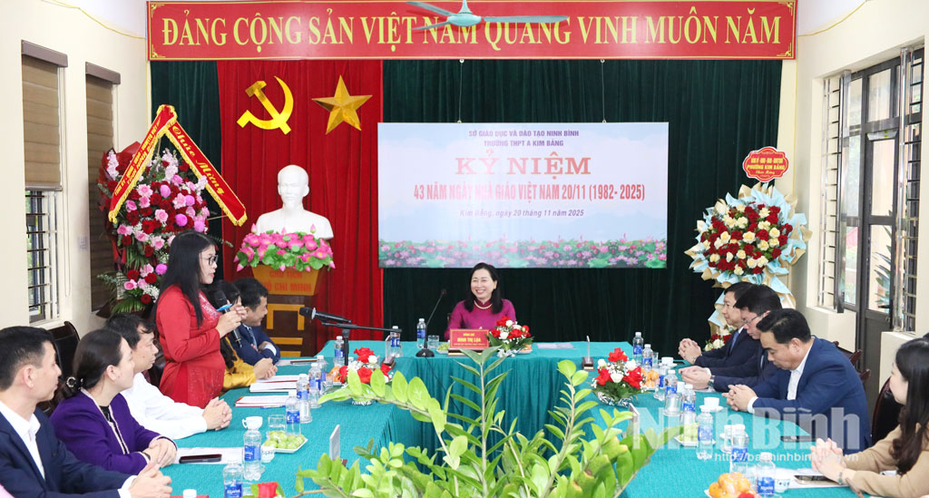 Đồng chí Phó Bí thư Thường trực Tỉnh ủy Đinh Thị Lụa thăm, chúc mừng Trường THPT A Kim Bảng nhân kỷ niệm Ngày Nhà giáo Việt Nam 20/11