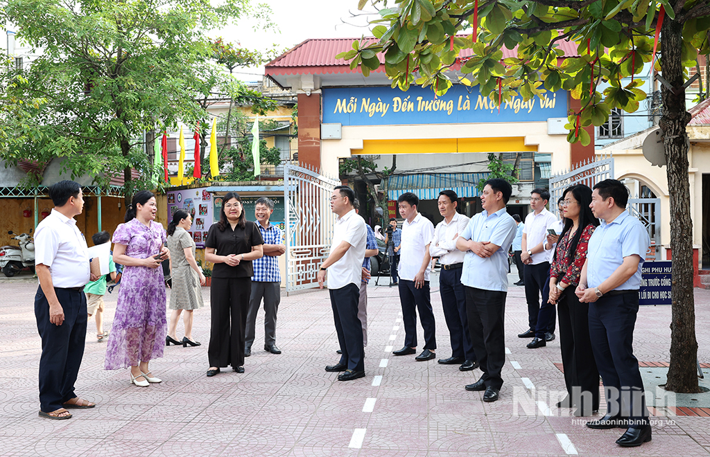 Phát biểu tại buổi làm việc, đồng chí Phó Chủ tịch UBND tỉnh Hà Lan Anh nêu rõ: Dự thảo văn kiện Đại hội Đảng bộ tỉnh Ninh Bình nhiệm kỳ 2025-2030 đưa ra chỉ tiêu, nhiệm vụ rất cao đối với lĩnh vực GD&ĐT, nhất là chỉ tiêu về các trường công lập đạt chuẩn trường quốc gia. Thực tiễn tại phường Nam Định, hiện tỷ lệ số trường học (tất cả các cấp học) đạt trường chuẩn quốc gia thấp do không đạt tiêu chí về diện tích và cơ sở vật chất.