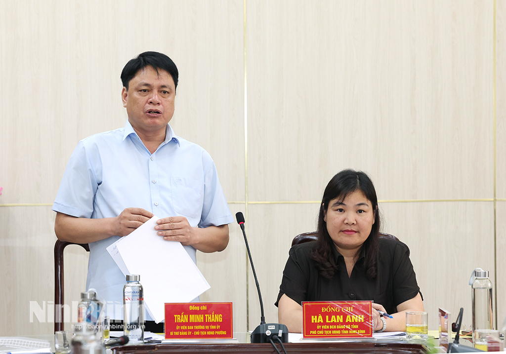 Đồng chí Trần Minh Thắng, Ủy viên Ban Thường vụ Tỉnh ủy, Bí thư Đảng ủy, Chủ tịch HĐND phường Nam Định phát biểu tại buổi làm việc.