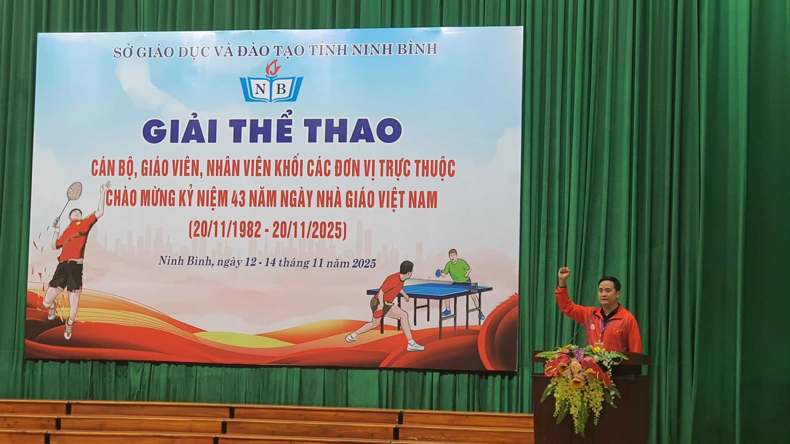 Trong thời đại chuyển đổi số – khi trí tuệ và công nghệ được tôn vinh – thể thao vẫn nhắc chúng ta nhớ rằng: Sức mạnh của con người vẫn khởi đầu từ sức khỏe, từ ý chí và tinh thần đồng đội. Để chào mừng thành công Đại hội Đảng các cấp, hướng tới Đại hội Đảng toàn quốc, kỉ niệm 43 năm Ngày Nhà giáo Việt Nam (20/11/1982 – 20/11/2025), sáng ngày 12/11/2025, Sở Giáo dục và Đào tạo (GDĐT) tỉnh Ninh Bình long trọng tổ chức Lễ khai mạc Giải thể thao cán bộ, giáo viên, nhân viên khối các đơn vị trực thuộc Sở GDĐT tỉnh Ninh Bình năm 2025.