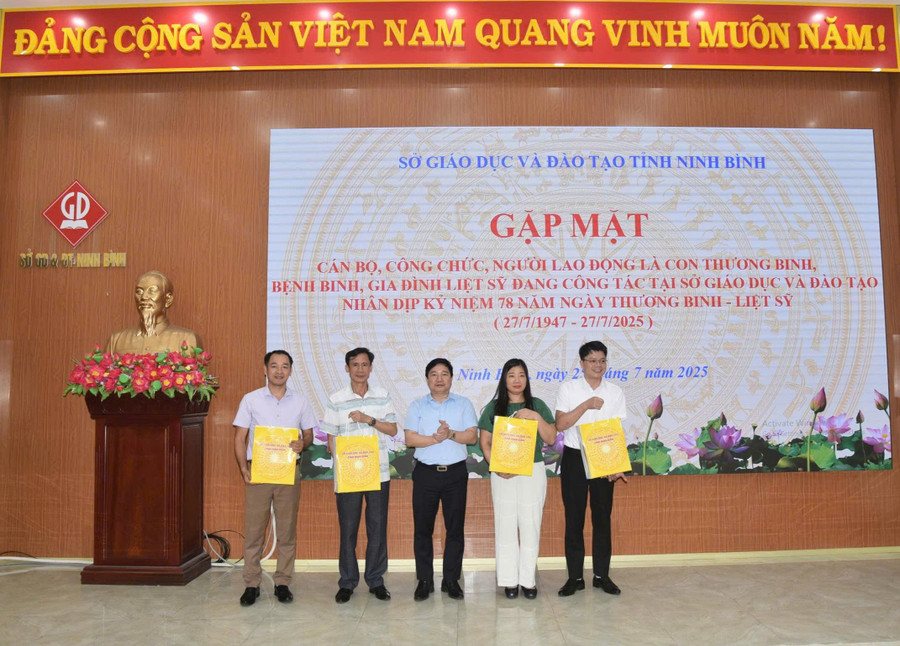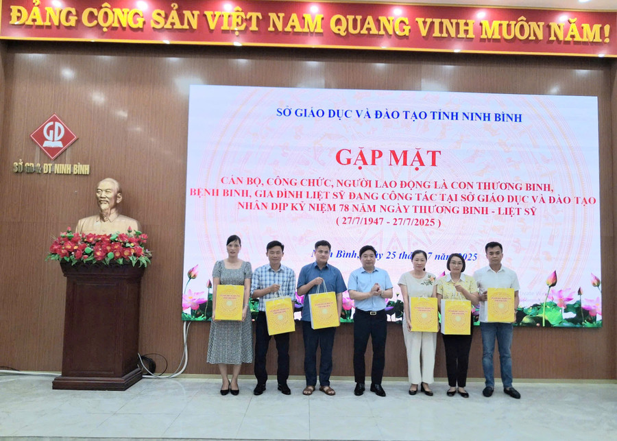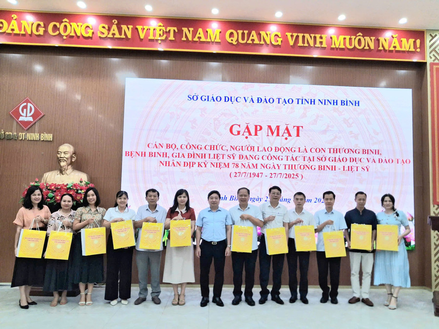 Đại diện Sở GD&ĐT Ninh Bình bày tỏ mong muốn, các cán bộ, công chức, người lao động là con thương binh, bệnh binh, gia đình liệt sĩ đang làm việc tại Sở GD&ĐT sẽ tiếp tục phát huy tinh thần cách mạng kiên cường của cha ông để ra sức đoàn kết phấn đấu, góp phần tích cực vào công cuộc xây dựng và bảo vệ Tổ quốc Việt Nam trong thời đại mới.
