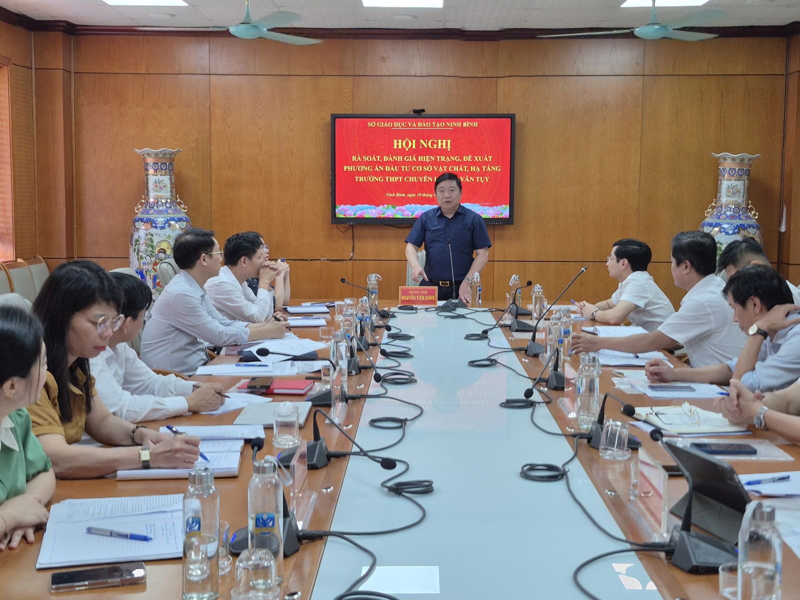 Ngày 19/8/2025, đồng chí Nguyễn Tiến Dũng, Tỉnh ủy viên, Giám đốc Sở Giáo dục và Đào tạo chủ trì Hội nghị tại trường THPT chuyên Lương Văn Tụy. Sau khi Lãnh đạo nhà trường báo cáo đặc điểm tình hình, đề xuất phương án đầu tư cơ sở vật chất và các ý kiến của các đồng chí Lãnh đạo các sở, ban, ngành; Hội nghị đã thống nhất giao Trường THPT chuyên Lương Văn Tụy căn cứ các quy định hiện hành, tiếp tục phối hợp với các cơ quan, đơn vị có liên quan rà soát, đề xuất phương án mở rộng diện tích, đầu tư cơ sở vật chất, hạ tầng cho nhà trường đảm bảo đồng bộ, đầy đủ công năng sử dụng, đạt chuẩn quốc gia mức độ 2, đáp ứng yêu cầu của trường THPT chuyên.