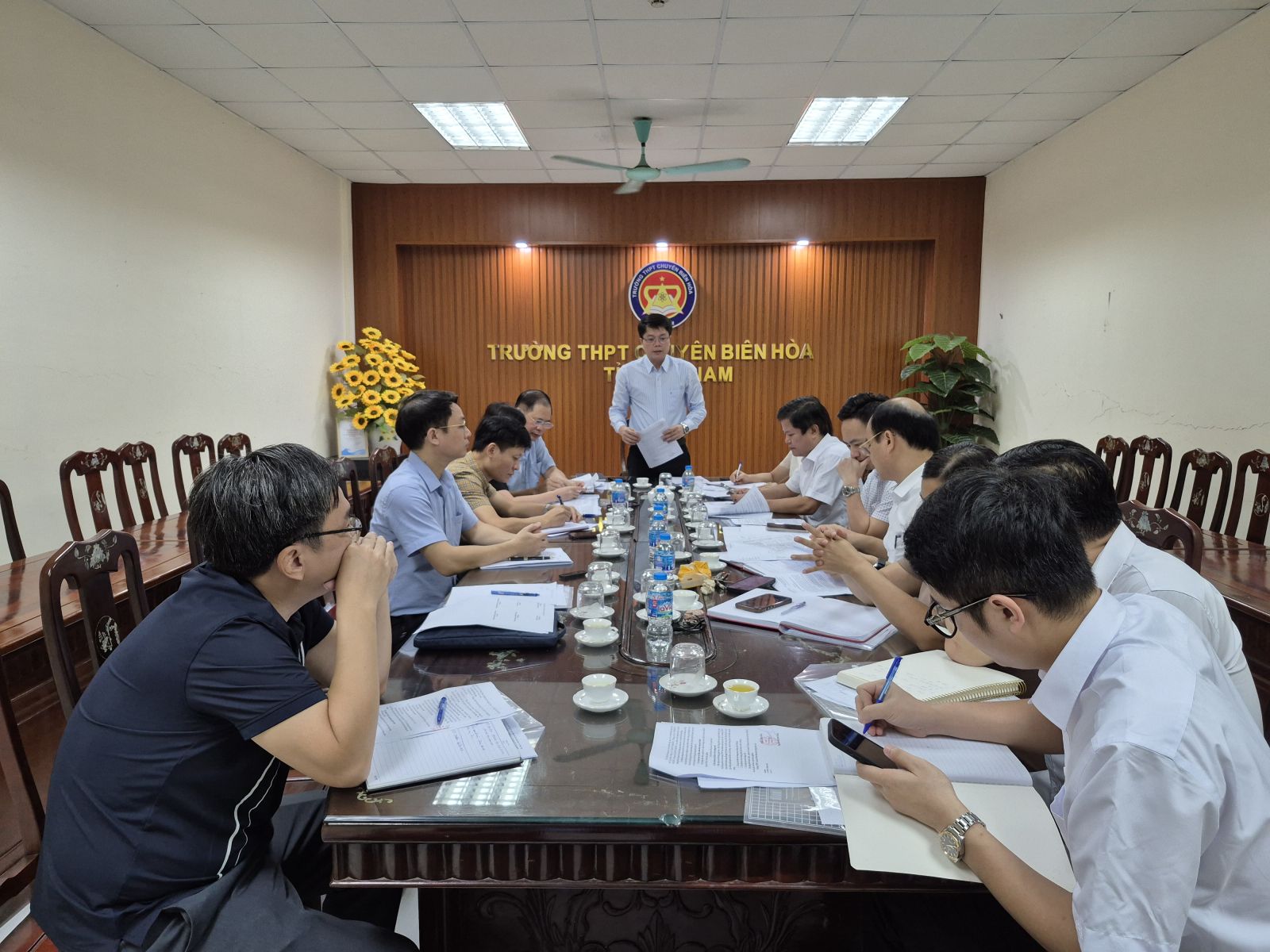 Ngày 20/8/2025, đồng chí Ngô Quang Tuệ, Phó Giám đốc Sở Giáo dục và Đào tạo chủ trì Hội nghị tại trường THPT chuyên Biên Hòa. Sau khi rà soát thực trạng và nghiên cứu đề xuất đầu tư cơ sở vật chất, thiết bị của nhà trường, trên cơ sở ý kiến của các sở, ban, ngành, Hội nghị đã thống nhất giao Trường THPT chuyên Biên Hòa căn cứ các quy định hiện hành, tiếp tục phối hợp với các cơ quan, đơn vị có liên quan tiếp tục rà soát kỹ, đánh giá đầy đủ hiện trạng cơ sở vật chất, đặc biệt là các hạng mục còn thiếu; nghiên cứu, đề xuất phương án đầu tư cơ sở vật chất đảm bảo đồng bộ, đầy đủ công năng, đạt chuẩn quốc gia mức độ 2, đáp ứng yêu cầu dạy học của trường THPT chuyên theo quy định, tránh trùng lặp nội dung với các dự án đã và đang triển khai.