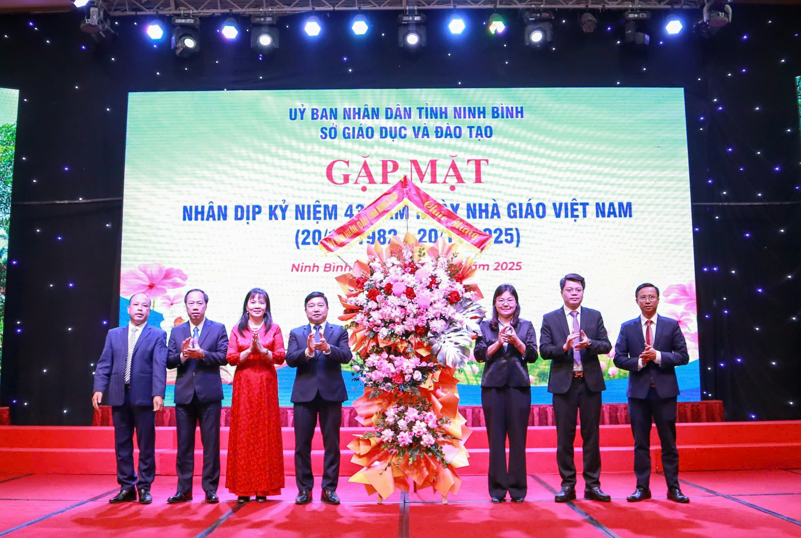Phát biểu tại buổi gặp mặt, đồng chí Nguyễn Tiến Dũng, Giám đốc Sở GDĐT đã bày tỏ sự cảm ơn chân thành tới các đồng chí Lãnh đạo Tỉnh uỷ, HĐND, UBND tỉnh đã luôn quan tâm lãnh đạo, chỉ đạo phát triển sự nghiệp giáo dục của tỉnh; đồng thời bày tỏ sự tri ân sâu sắc tới các thế hệ đi trước. Báo cáo khái quát tình hình, đồng chí nhấn mạnh: Sự sáp nhập không chỉ là phép cộng về cơ học, mà là sự cộng hưởng sức mạnh, trí tuệ và truyền thống hiếu học của cả ba vùng đất. Kế thừa nền tảng vững chắc từ các thế hệ lãnh đạo Hà Nam Ninh, Nam Hà và 3 tỉnh trước sáp nhập, ngành Giáo dục Ninh Bình mới đang nỗ lực, chủ động tham mưu với Tỉnh uỷ, HĐND, UBND tỉnh những chính sách, cơ chế cho sự phát triển của ngành trong giai đoạn lịch sử mới nhằm tiếp tục phát huy những kết quả đã đạt được, duy trì, củng cố vững chắc vị thế Giáo dục Ninh Bình trong hệ thống giáo dục cả nước. Trong đó, chủ đạo là Nghị quyết của Ban Chấp hành Đảng bộ tỉnh về phát triển giáo dục giai đoạn 2025-2030, tầm nhìn đến năm 2045 và Chiến lược phát triển giáo dục tỉnh Ninh Bình giai đoạn 2025-2030, tầm nhìn đến năm 2045.