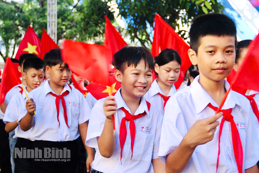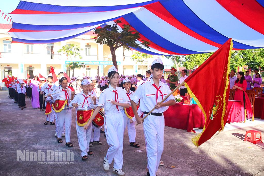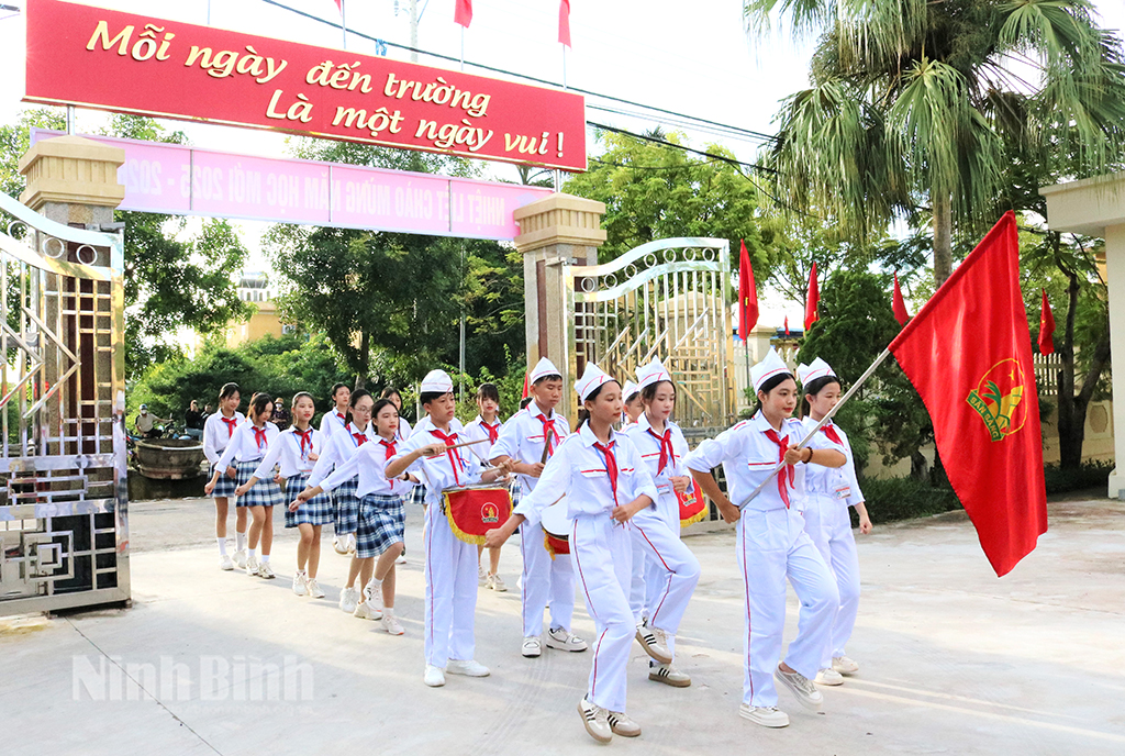 Với chủ đề “Kỷ cương – Sáng tạo – Đột phá – Phát triển”, năm học 2025 – 2026, Trường THCS Hồi Ninh xác định nhiệm vụ trọng tâm là tiếp tục đẩy mạnh học tập và làm theo tư tưởng, đạo đức, phong cách Hồ Chí Minh; xây dựng môi trường giáo dục an toàn, lành mạnh, thân thiện, dân chủ, kỷ cương. Đẩy mạnh đổi mới phương pháp dạy học và kiểm tra đánh giá theo hướng phát triển năng lực, phẩm chất; ứng dụng công nghệ thông tin, chuyển đổi số trong quản lý và giảng dạy; không ngừng nâng cao chất lượng giáo dục toàn diện, chất lượng học sinh giỏi, chất lượng tuyển sinh vào lớp 10 THPT.Lễ khai giảng năm học mới 2025-2026 của thầy và trò Trường THCS Hồi Ninh (xã Chất Bình). Ảnh: Anh Tuấn